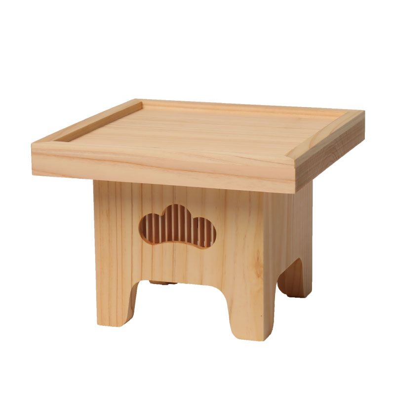 組子三宝台座:神様へのお供え物をするときに使用する縁起物の三宝に、日本の伝統工芸である組子細工をあしらいました。