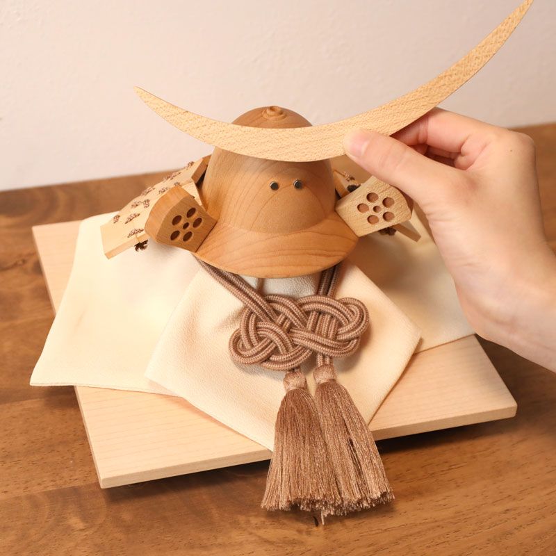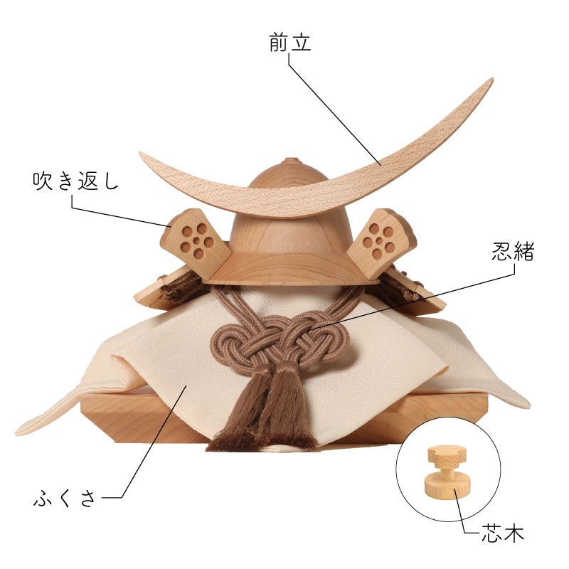 兜:身を守る防具である兜や鎧には、子どもの代わりに厄を引き受ける意味と、災難から身を守りたくましく成長するという意味があります。前立はマグネット式で取り外し可能です。